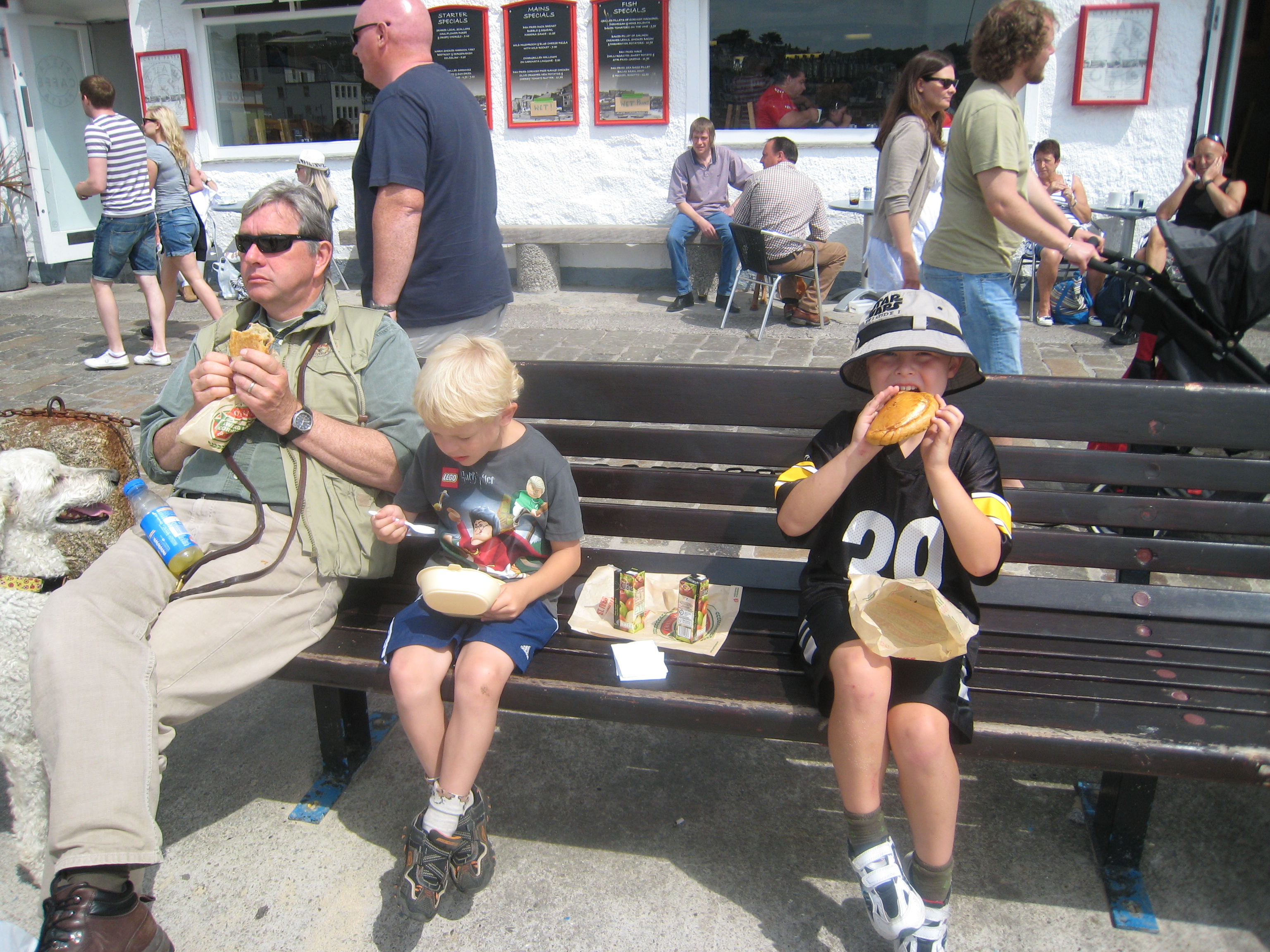 Bazzle, Granddad, Cole and Tim eating pasties (07-11-2011 11:40)