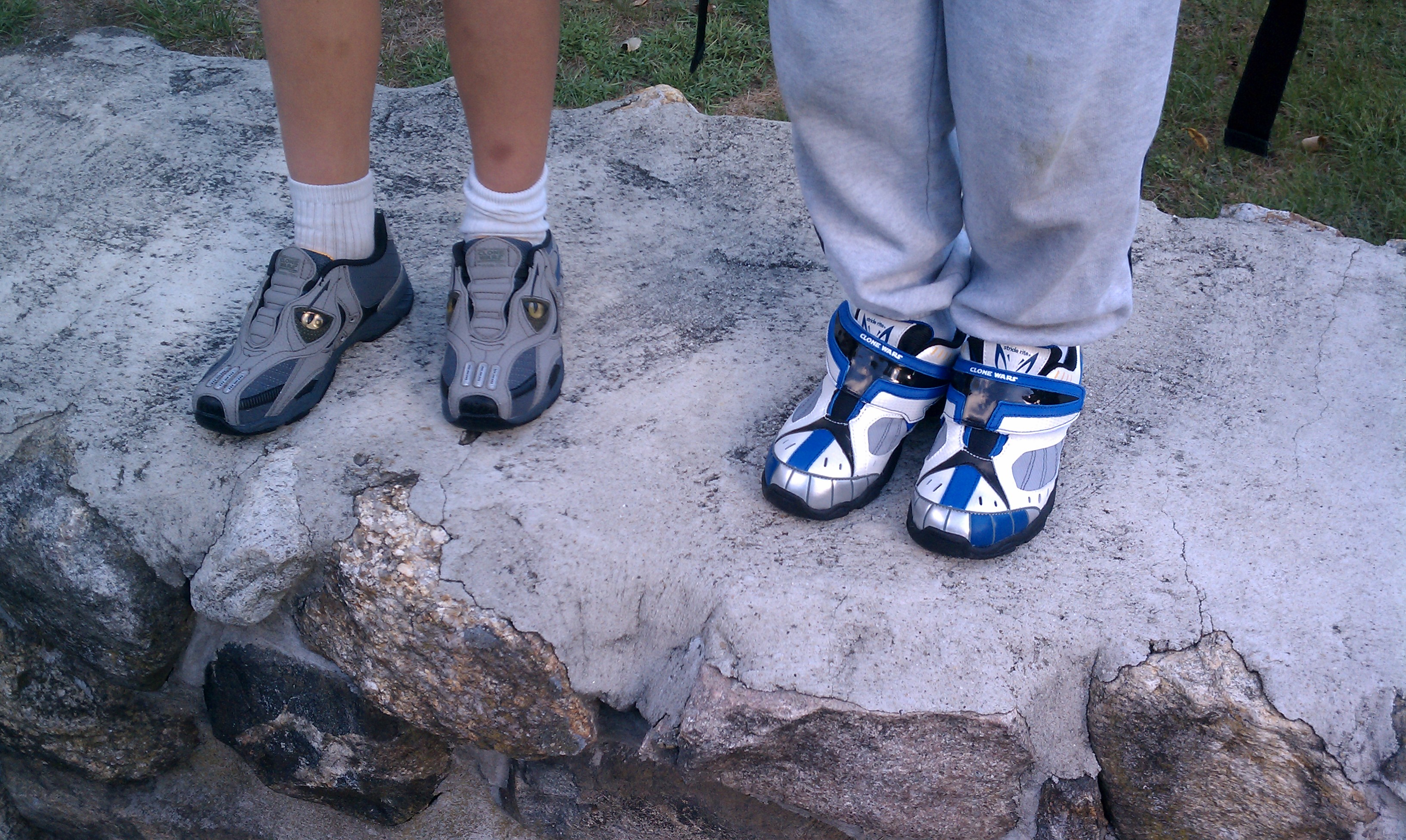 Tim and Cole with Star Wars Shoes (09-10-2010 08:37)
