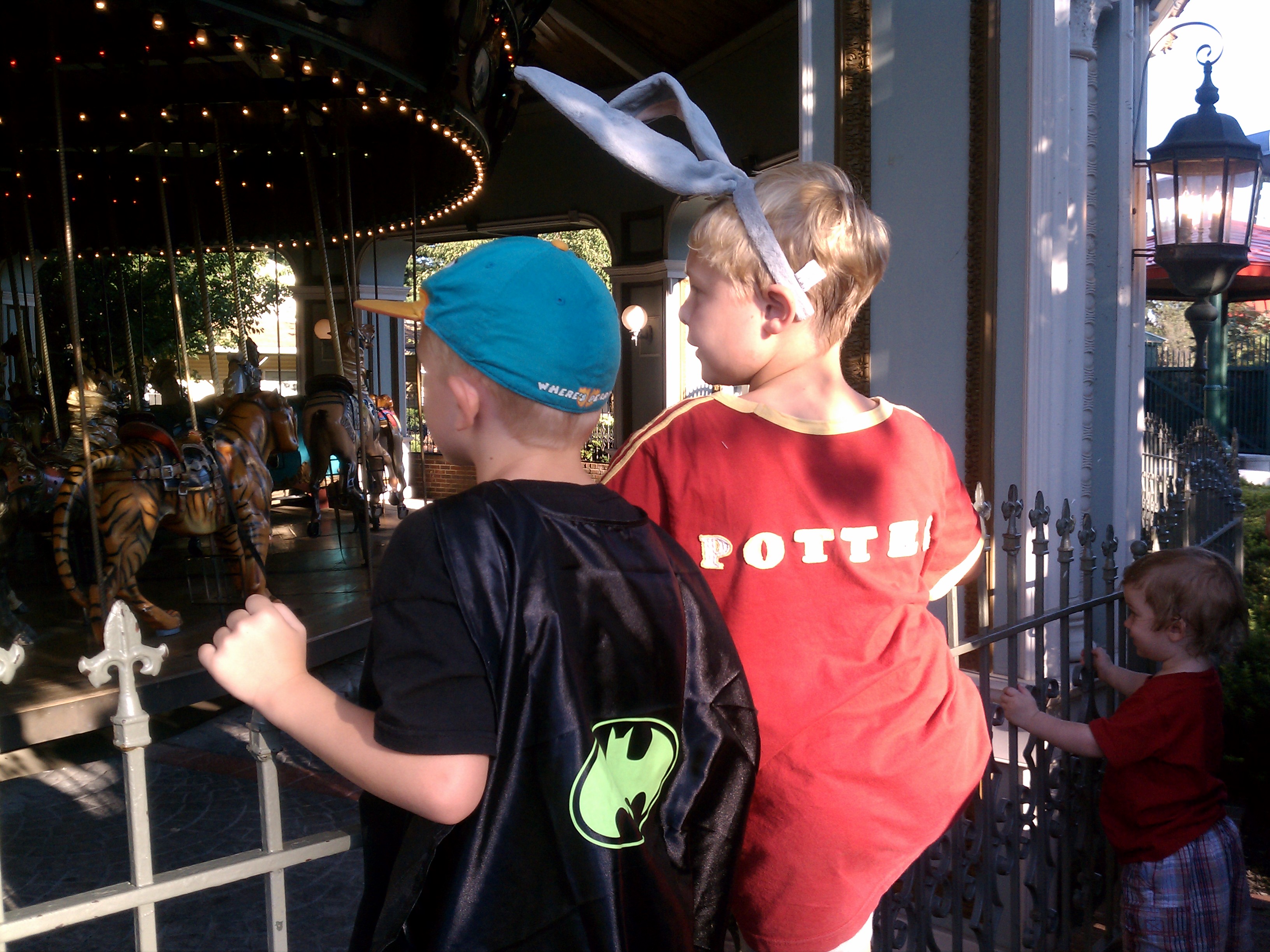 Bat-Cole and Bugs-Tim watching the carousel at 6 flags (07-30-2011 18:35)