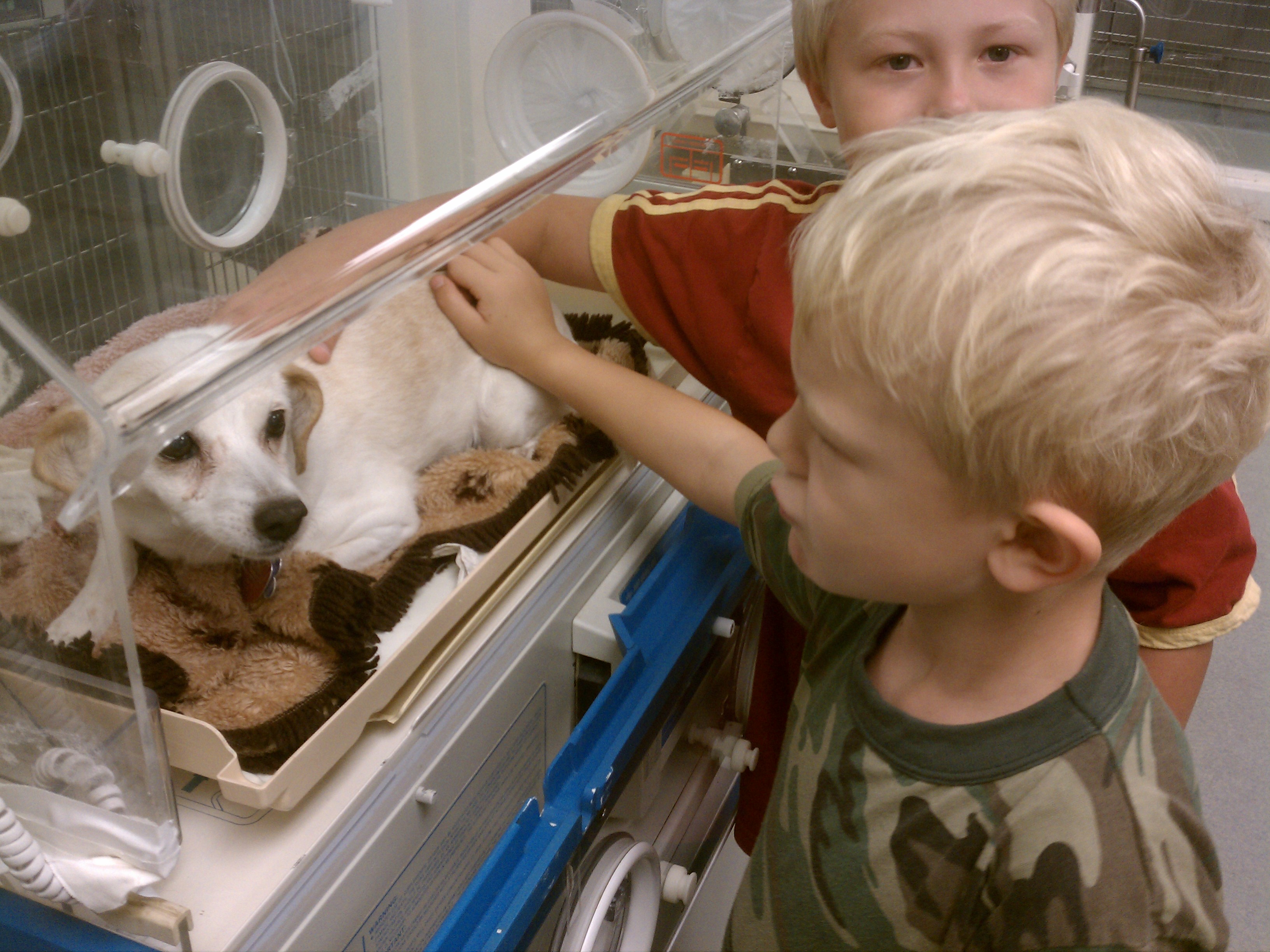 Emily in an oxygen tent with Cole and Tim (08-30-2011 09:42)