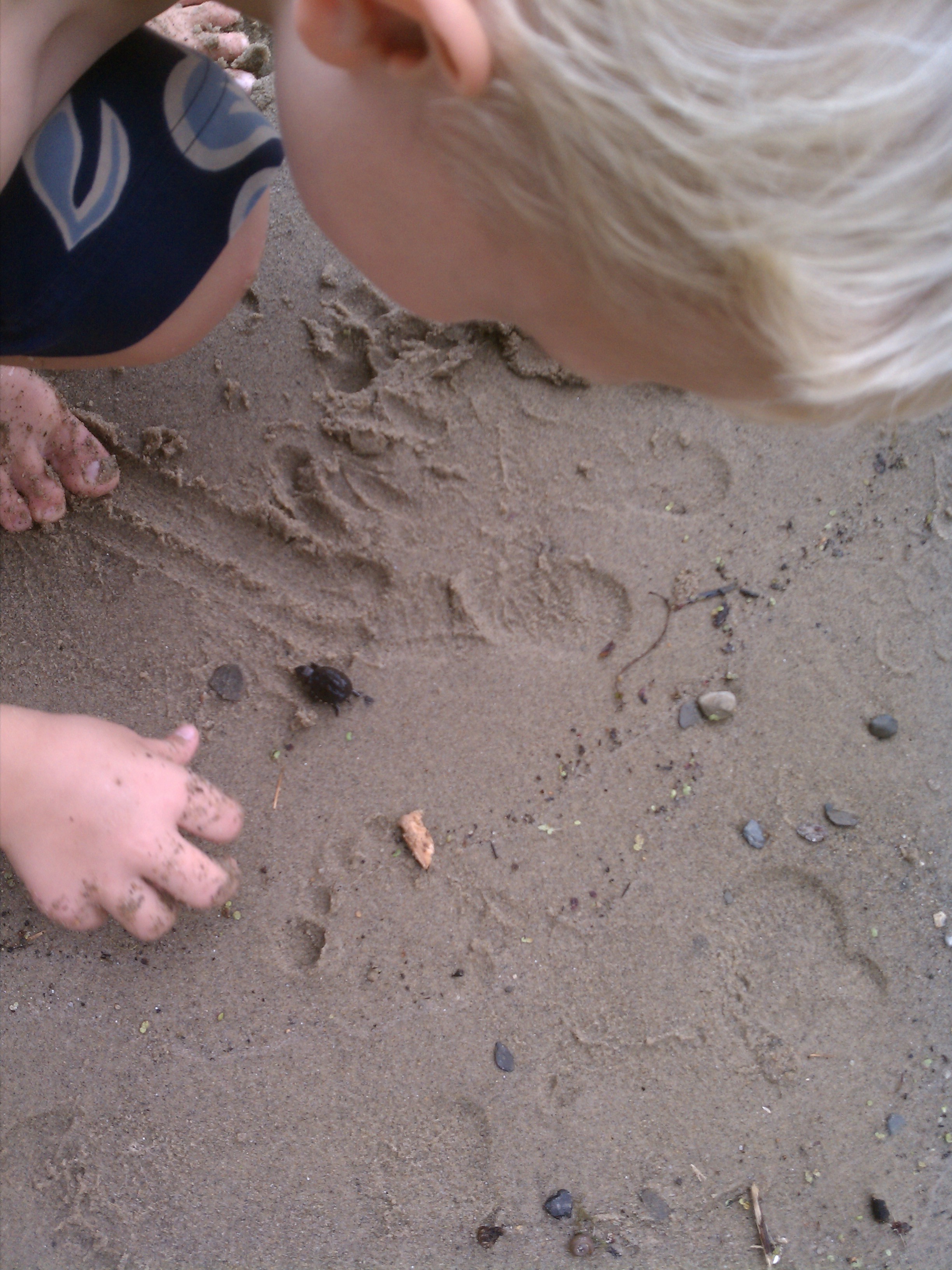 Cole and a tiny turtle (09-05-2011 15:54)