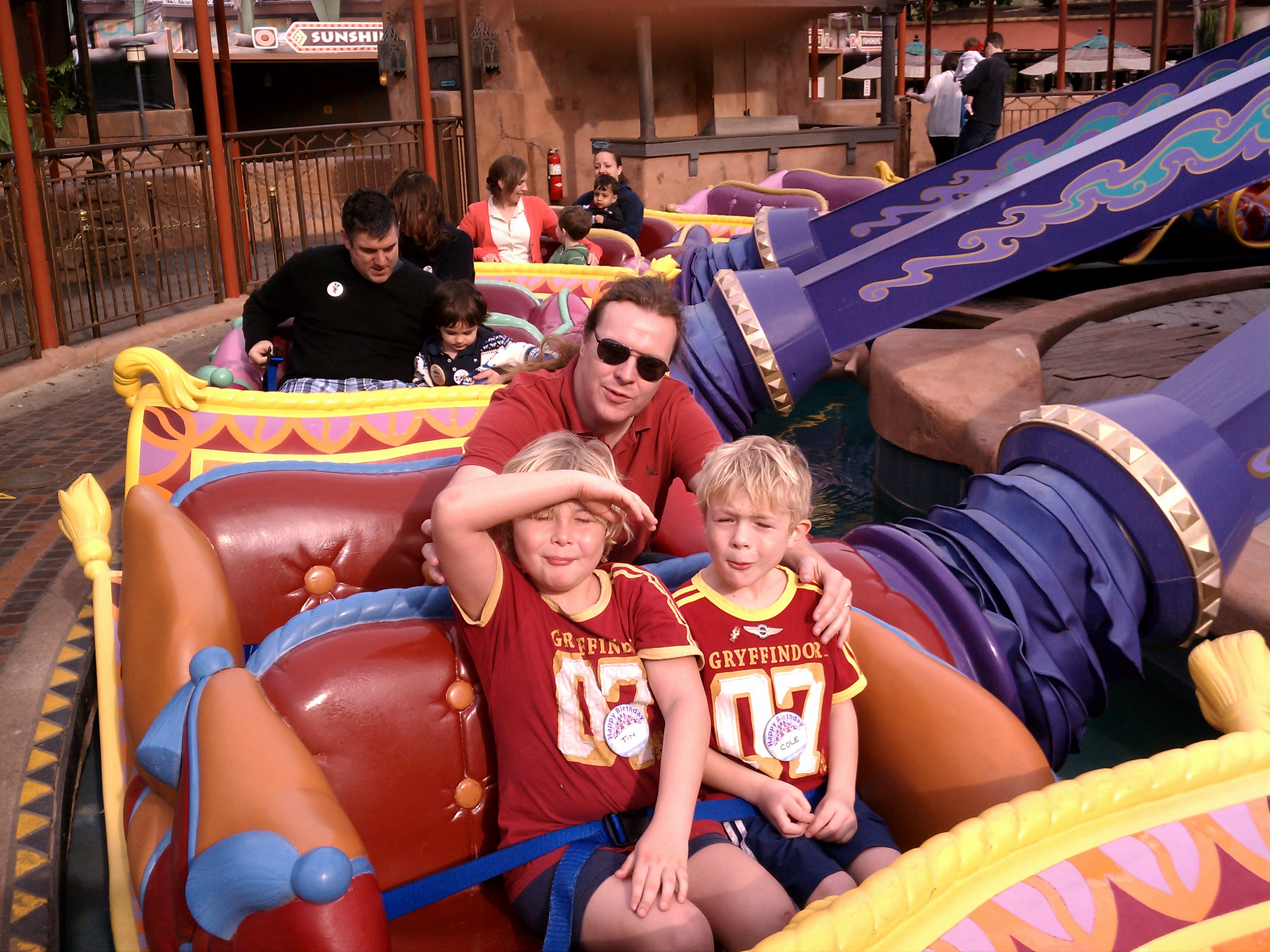 Tim, Ben and Cole riding the carpets at Disney World (02-25-2012 09:23)