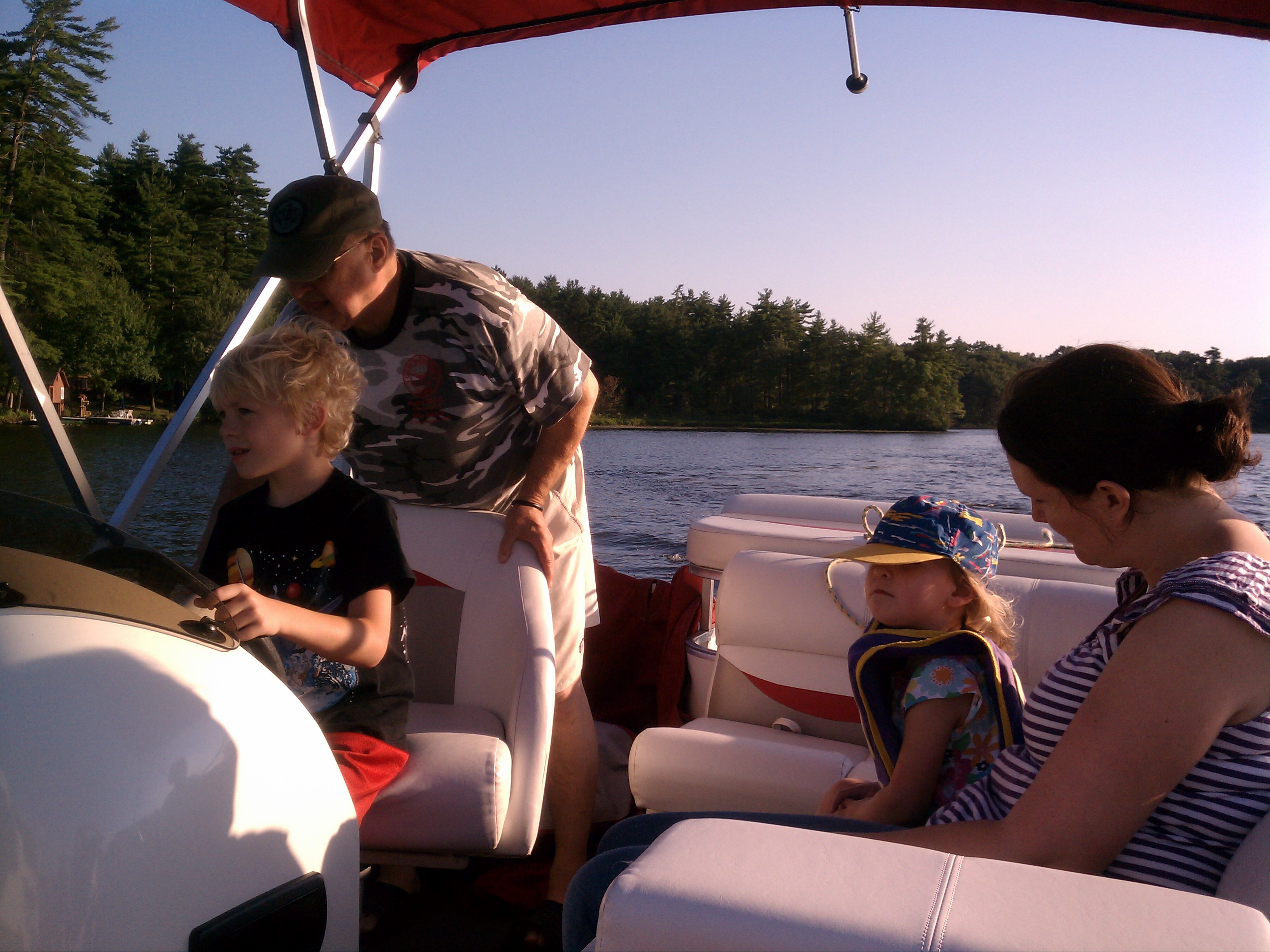 Cole piloting the boat with Poppy, Linda and Barb (07-22-2012 18:35)
