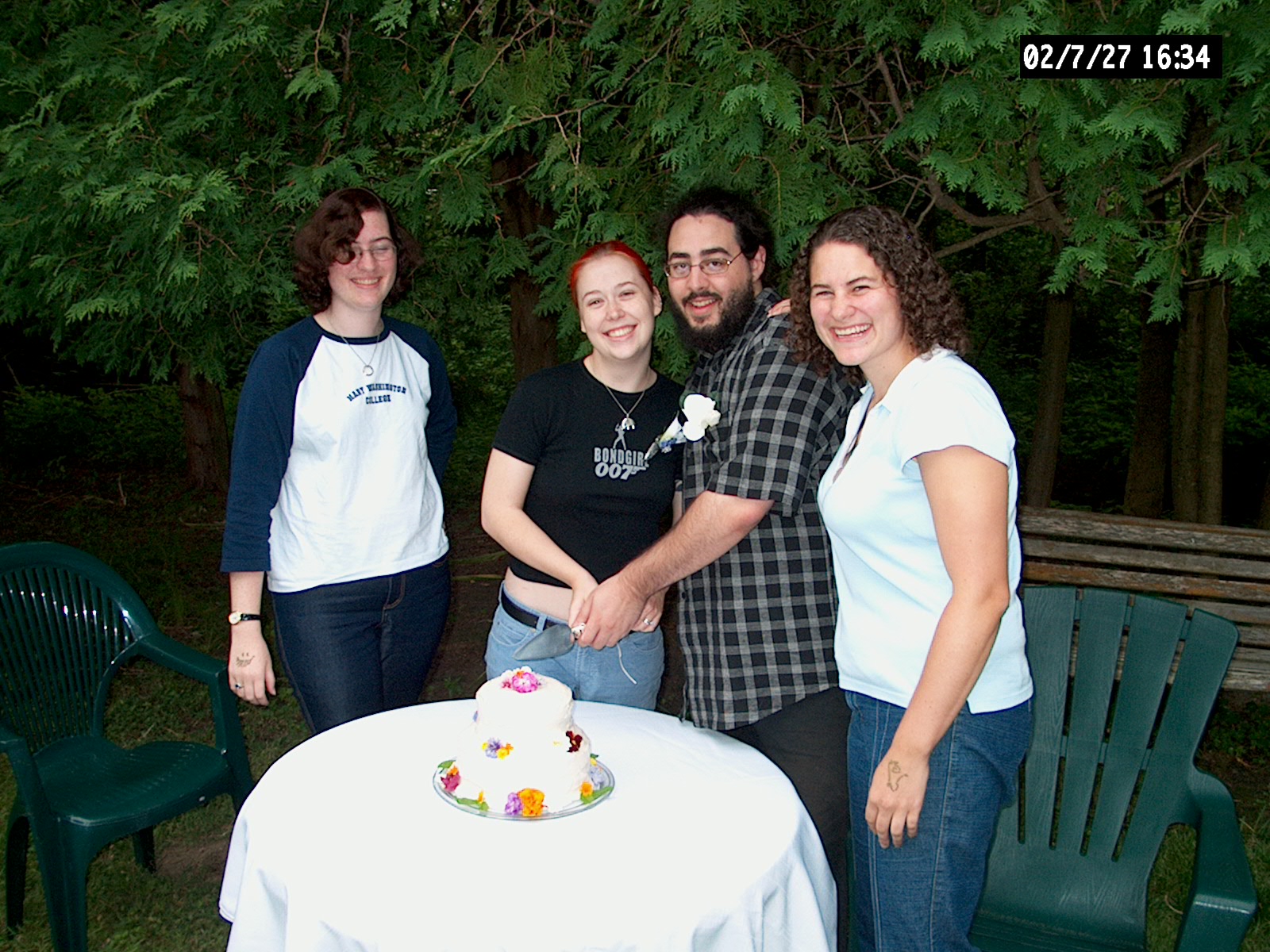 Abby, Beth, Corey and Rachel around cake