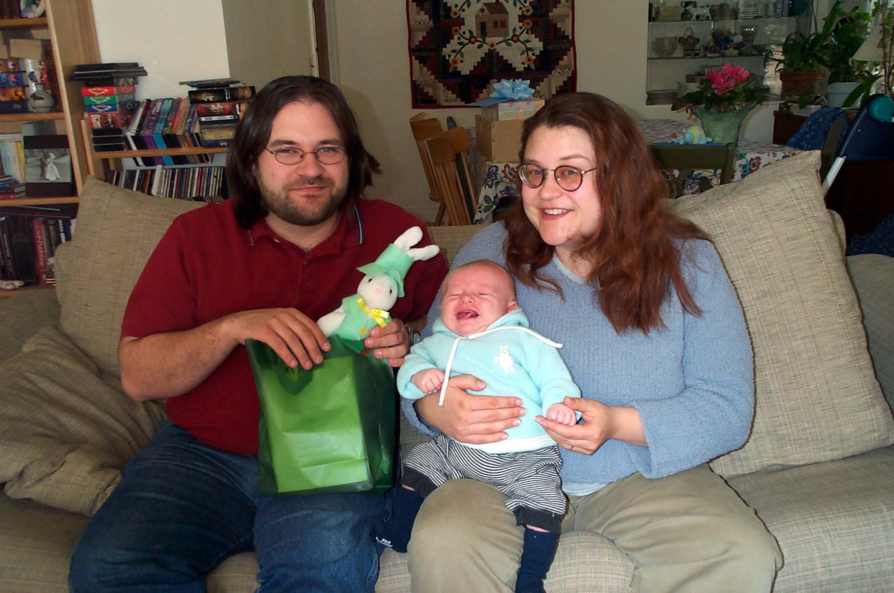 Juj, Mr. Rabbit, Tim and Xine on Easter (4-20-2003 3:14PM)