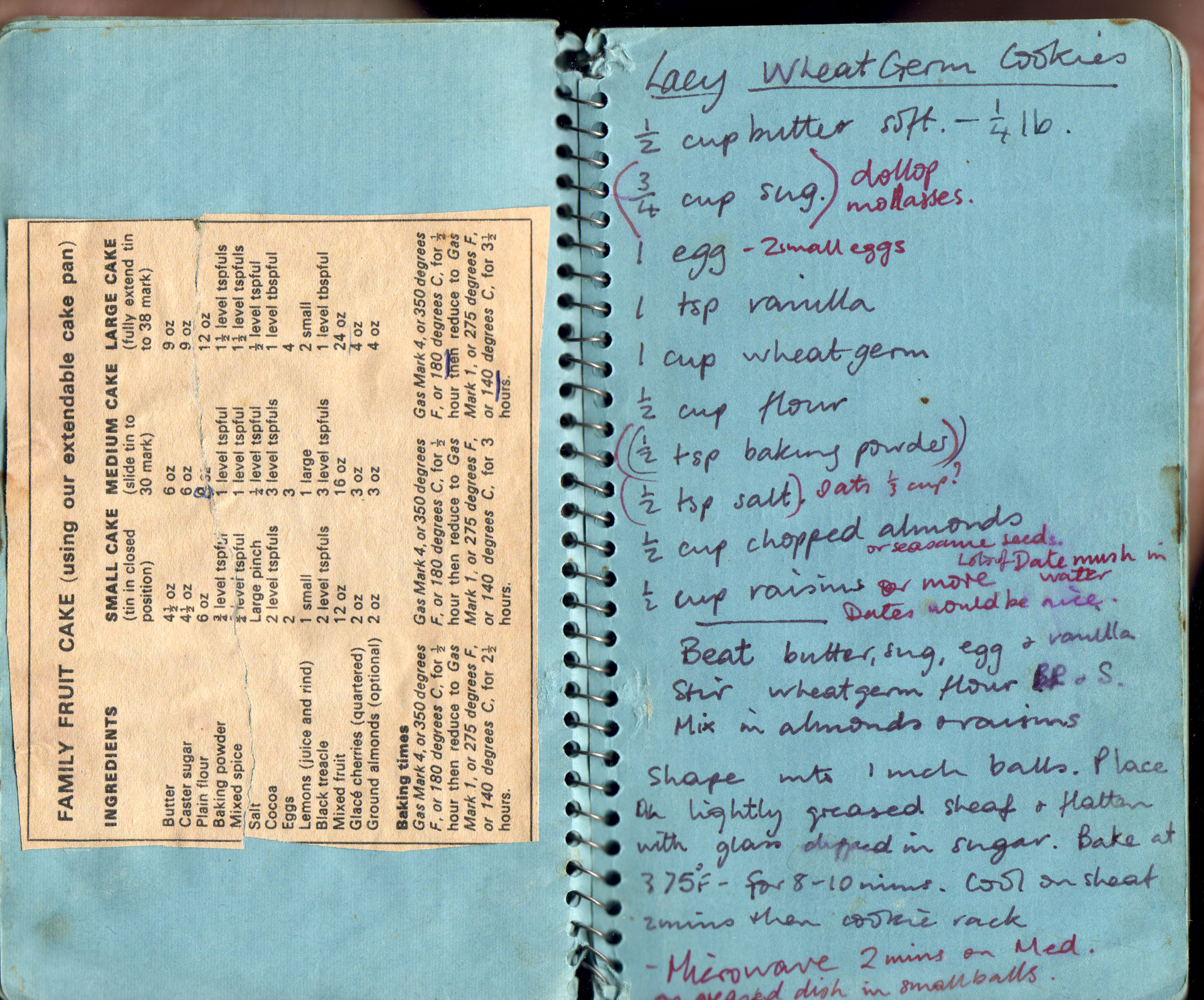 Fruit Cake; Lacy Wheatgerm Cookies