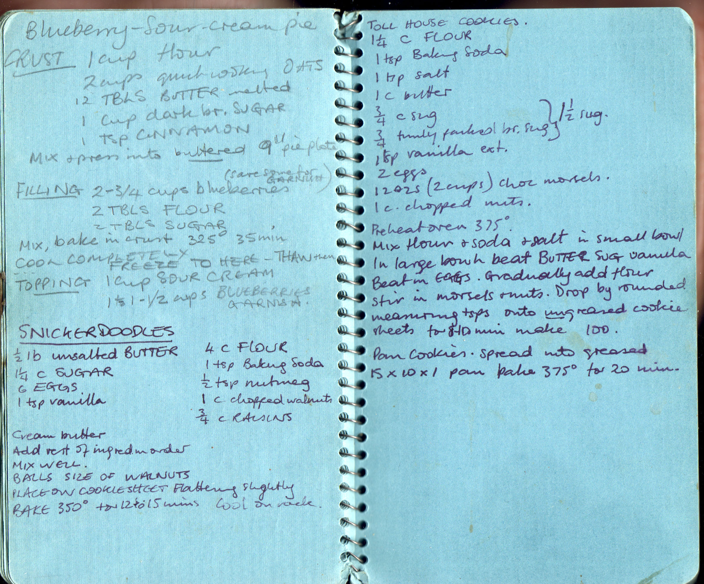 Blueberry sour-cream pie; Snickerdoodles; Tollhouse cookies
