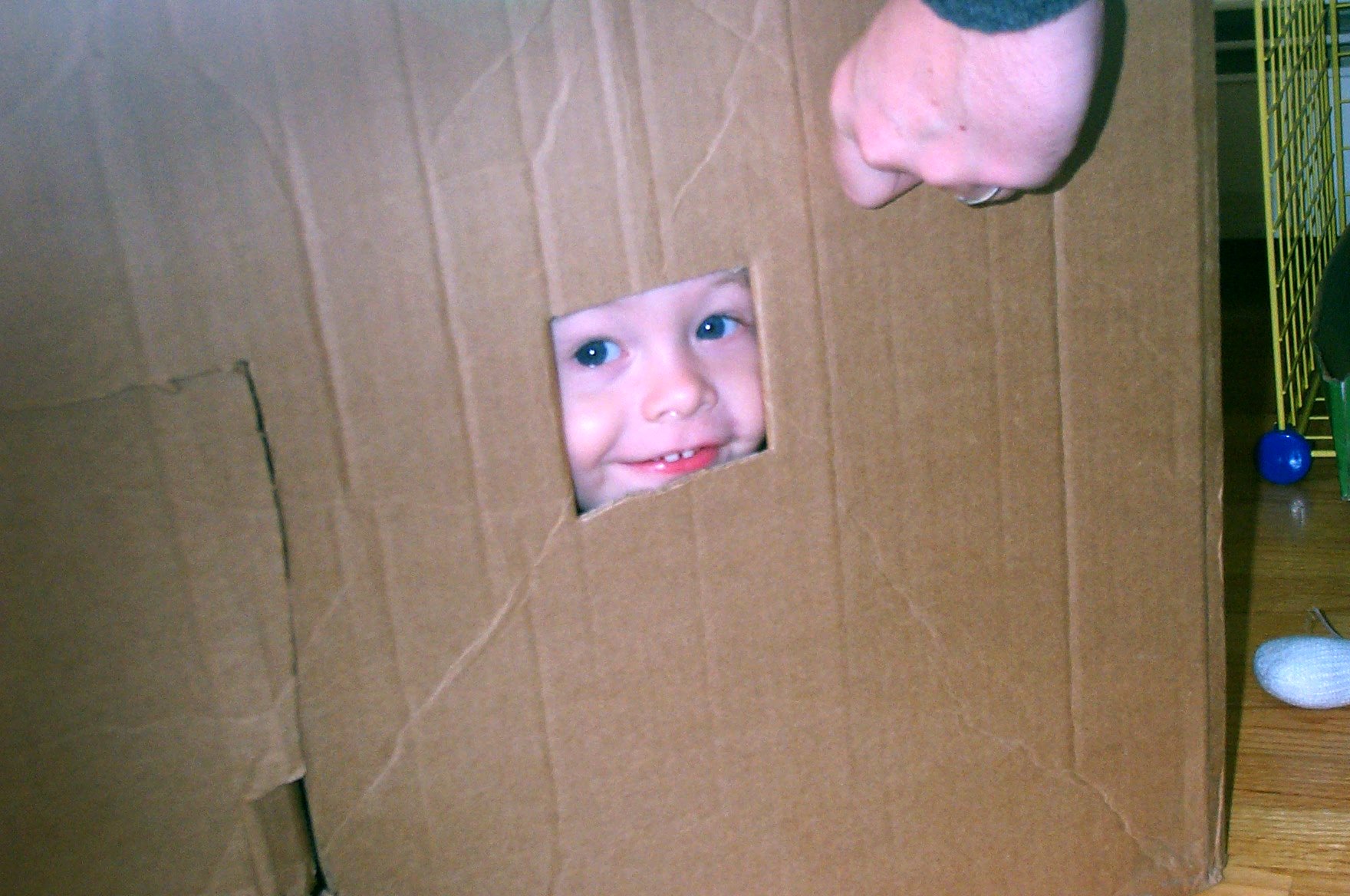 Ben's gallery: /86/001 - Tim peeping from cardboard house.jpg