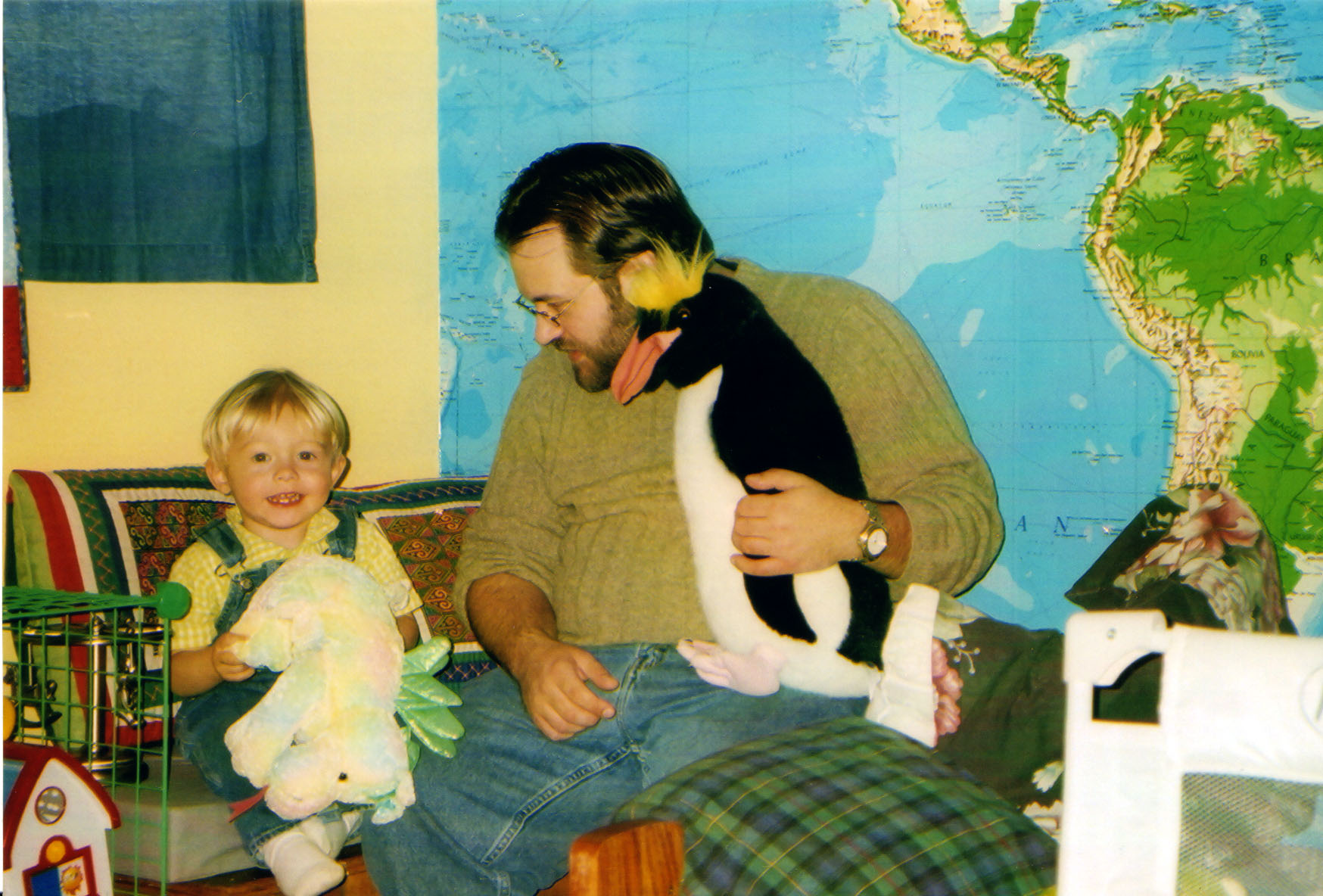Tim and Juj with stuffed toys (03-26-2005)