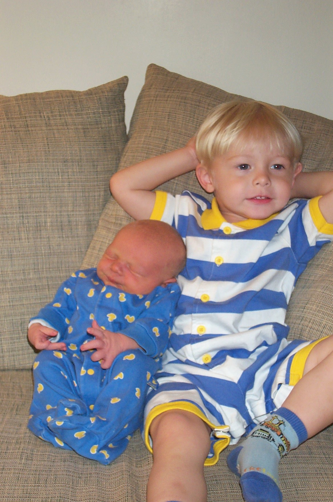 Tim and Nicholas cuddling on the couch (06-19-2005 08:55)
